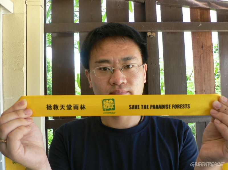 “中国每年进口大量从天堂雨林采伐的木材,我们分别是印度尼西亚和巴布亚新几内亚第二大和最大的林产品出口国。消费者在购买地板、家具或纸张的时候,也可能正在消费着天堂雨林的木材,甚至是由非法木材制造的产品。”绿色和平森林保护项目经理施鹏翔介绍:”我们希望中国与世界其它木材消费国家一道肩负起保护天堂雨林的责任。”