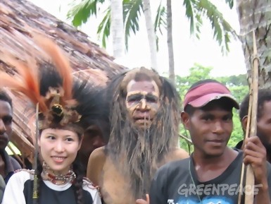 请在北京的您,继续为我们加油。让更多的人加入拯救天堂雨林的行列。您的黄丝带我们为您系到这些古老的大树上了。心存感激的是我们,也是我身边受到天堂雨林庇护了千百年的文化和人民。