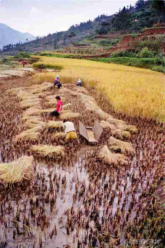 云南是水稻种 植的发源地之一,也是水稻的生物多样性中心。云南的农民至今保存着多种历史悠久的传统水稻品种,并实践着稻田养鸭、稻田养鱼等生态农业方法,取得了增产增 收又减少农药化肥使用的效果。这为我国的水稻生产提供了重要的种质资源基础和传统知识宝藏。”从这些照片中我们可以看到这些生态农业方法的影子,”王路侠 说,但她又不无担忧地表示:”化工农业、转基因农业将有可能使这一切成为历史,也将威胁到农业可持续发展的基础。”