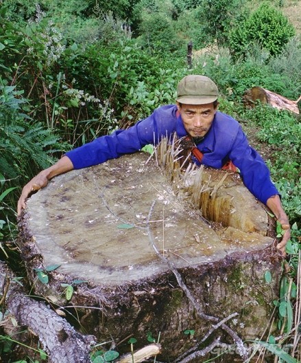 云南省谰沧县响水河村, 村民苏开明称金光集团APP砍伐了许多这样的百年大树。