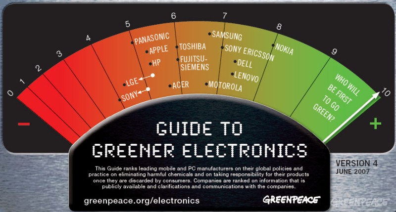 苹果公司过去曾因为产品回收与无毒化政策的不完善而被绿色和平屡次批评,现在终于向公众承诺将在2008年全面停止使用PVC和BFR–这一承诺将苹果公司从垫底的第14位提升至第10位。