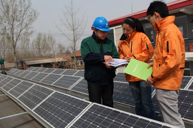 绿色和平建在顺义仓库屋顶的5kw太阳能光伏发电系统。