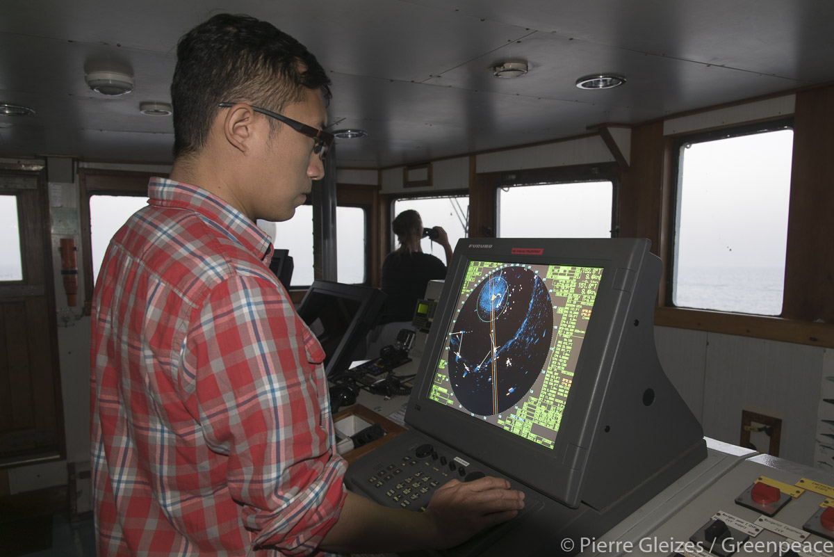 而现在,“希望”号上最新的客人就是绿色和平北京办公室的调研员王洋啦!他正和来自世界各地的海洋保护专家、以及西非沿海国家的渔业管理政府专员一起调研工业渔船在西非的捕鱼作业情况,共同监测各国渔船的捕捞作业情况,一旦遇到非法捕捞,便会联合执法予以制止。