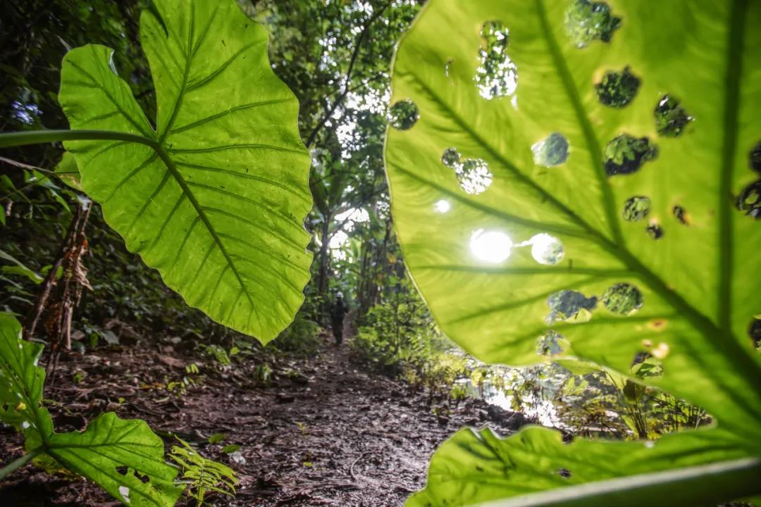 只要走进样地,他们必须严格遵从安全要求戴上安全帽。热带雨林中偶然会遇到高空掉落的断枝残杈,砸下的力量不亚于空中落石。如果赶上气势汹汹的磅礴大雨,打过来的就是一场雨点加树枝的双重暴雨。最难熬的季节就是雨季,雨水清洗整个森林,也在冲刷沉积已久的腐质物,热带雨林特有的淋溶现象让绝大多数人对树林里滴落的雨水过敏,浑身奇痒,疙瘩褪了又起。而无论雨季还是雾凉季,这里的地面都水漉湿滑,行走困难。一次董金龙偏巧在一个坡面上滑倒,身体迅速向深谷下滑,出于自救本能,他先是右手死命去拉小树,不管用,他下意识地用左手支撑,结果,右肩膀脱臼,左手腕骨折,双重损失。