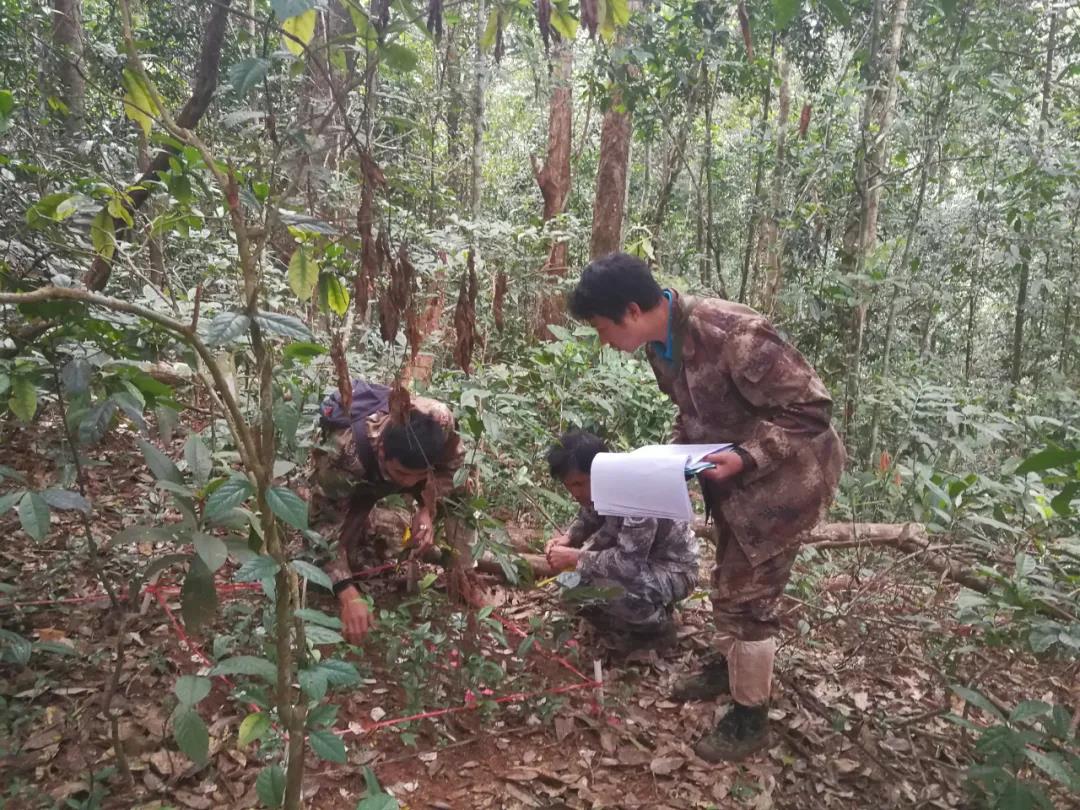 还有蛇,样地中最常见的是竹叶青,他们记不清已多少次与竹叶青近距离接触了。一次快速行进中前面有小树杈挡住,抬起来,好重,转头再望,一条“小青”已经进入战斗准备。张文富还单打独斗过眼镜蛇。那天下雨,大雾中的林地极暗,路也油滑,突然,他感觉有个东西跃了过来,本能地用文件夹一挡,掉在脚下的竟是条眼镜蛇,调整了身型直接跳起再进攻,张文富没有跑,而是选择像眼镜蛇一样,单手用文件夹开始了他的反攻。“眼镜蛇的速度和灵敏度都高,跑不掉,别无选择,一定要去镇住敌人”。张文富按照自己的策略追了眼镜蛇十多米,每一步都很缓慢,和毒蛇间的对弈,要点就是稳。“所以我们的野外很刺激”,张文富笑着说。