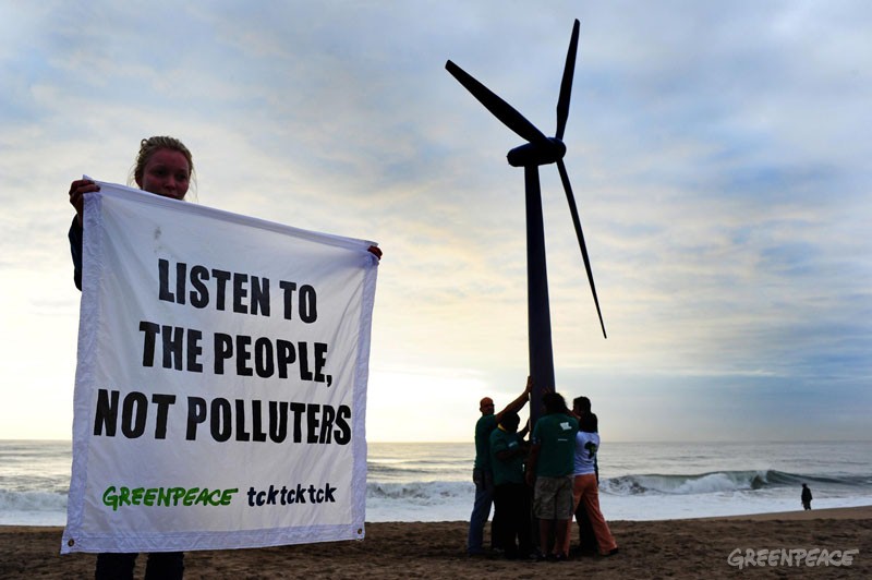 在德班举行的联合国气候大会开幕之时,绿色和平敦促各国政府倾听人民保护气候心声。