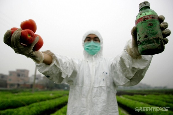 2008年12月和2009年2月,绿色和平以三口之家一天所需量为标准,在北京、上海和广州的易初莲花购物中心 、沃尔玛超市、华润万家超市、农工商超市,以及两个农贸市场,购买了当地常见的蔬菜和水果进行农药残留的检测。检测发现:在45个样品中,共有40个样品检测出50种农药残留,混合农药的残留更为严重–25个样品残留着至少5种不同的农药,5个样品甚至含有10种以上不同的农药残留。